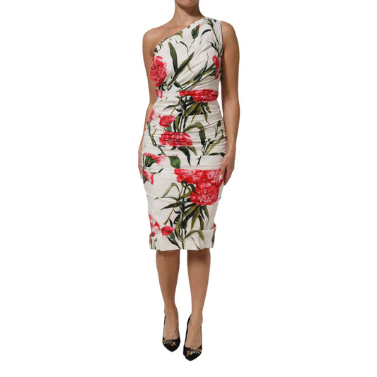 Dolce & Gabbana White Floral One Shoulder Sheath Midi Dress