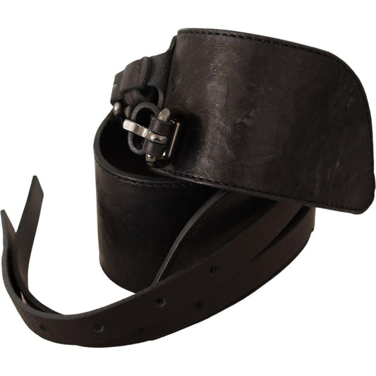 Costume National Black Leather Normal Logo Buckle Waist Belt