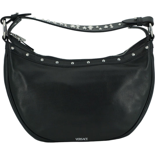 Versace Black Calf Leather Small Hobo Shoulder Bag