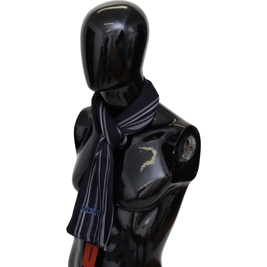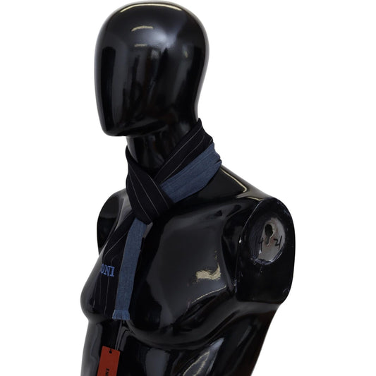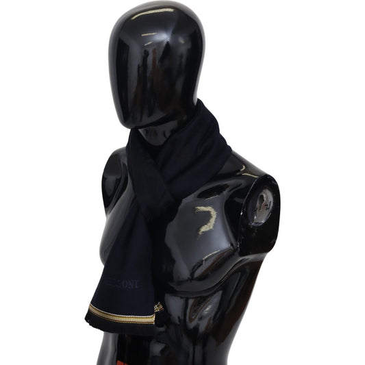 Missoni Black Blue Striped Wool Unisex Wrap scarf