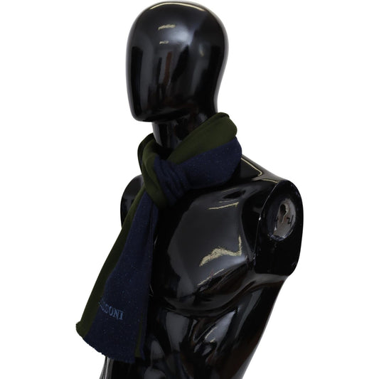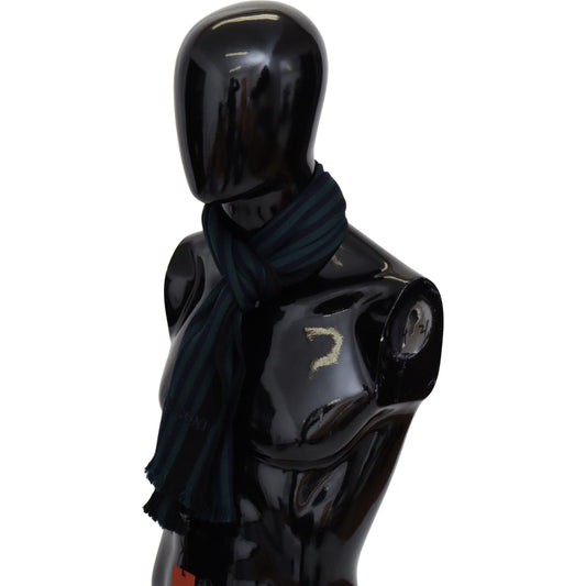 Missoni Green Striped Wool Unisex Neck Wrap Shawl Blue