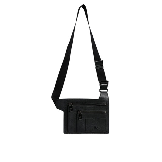 Dolce & Gabbana Black Leather Logo Embossed Crossbody Bag