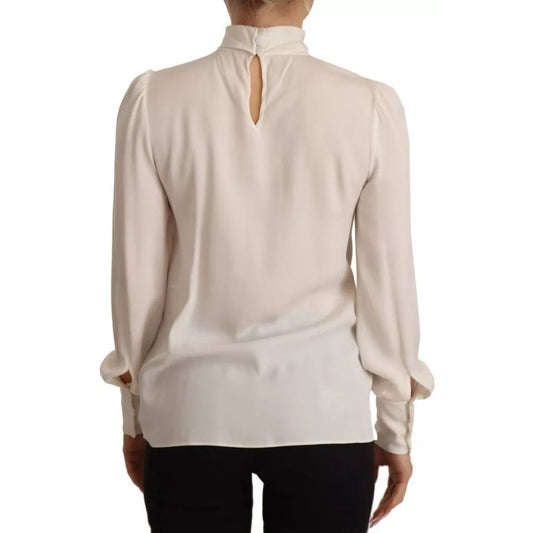 Dolce & Gabbana White Ascot Collar Long Sleeve Blouse Top