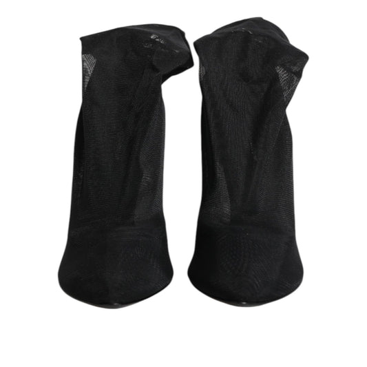Dolce & Gabbana Black Mesh Stiletto Heels Ankle Boots Shoes