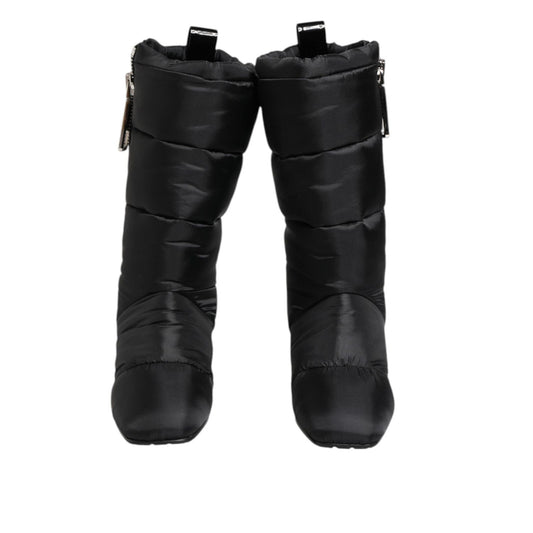 Dolce & Gabbana Black Padded Mid Calf Logo Heel Boots Shoes