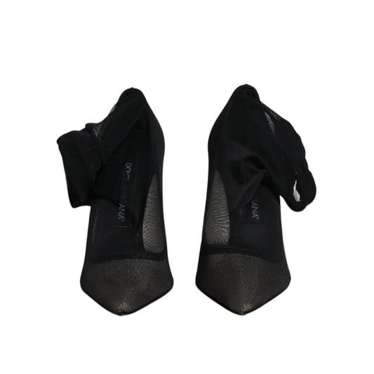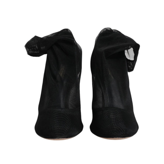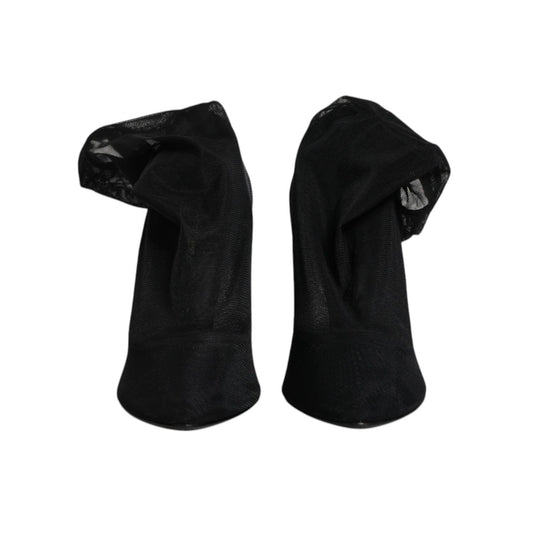Dolce & Gabbana Black Silk Mesh Sock Style Heels Boots Shoes