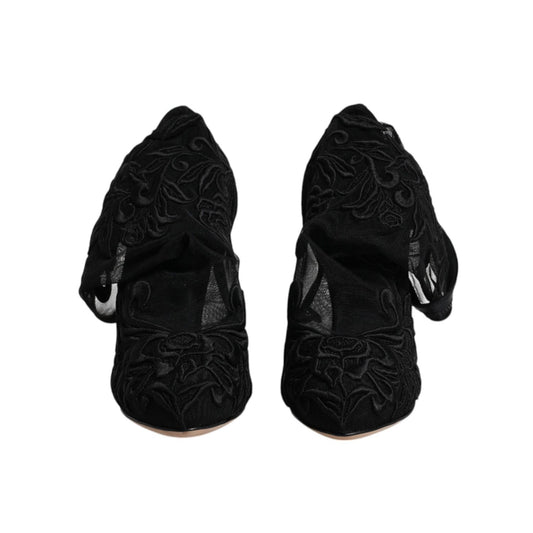 Dolce & Gabbana Black Tulle Stretch Floral Booties Shoes