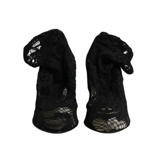 Dolce & Gabbana Black Lace Stretch Heels Mid Calf Boots Shoes