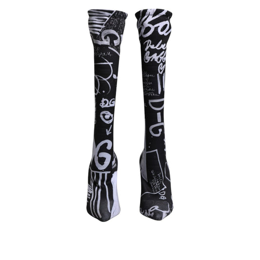 Dolce & Gabbana Black Logo Stretch Heels High Boots Shoes