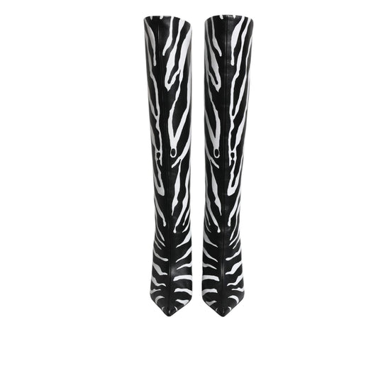 Dolce & Gabbana Black White Zebra Heels High Boots Shoes