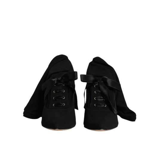 Dolce & Gabbana Black Suede Stilettos Booties Socks Shoes