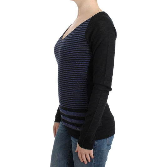 Ermanno Scervino Blue Knitted Wool Stretch Sweater Top