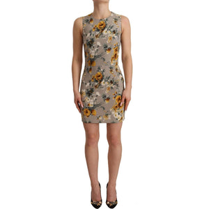 Dolce & Gabbana Gray Silk Stretch Floral Sheath Mini Dress