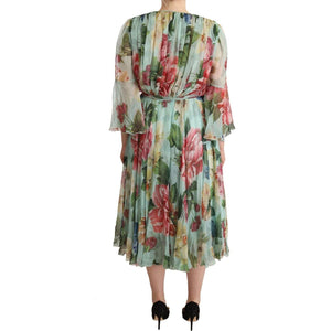 Gorgeous brand new with tags, 100% Authentic Dolce & Gabbana Green dress with tie fastening at the waist. Made of silk. Zip fastening at the back. Decorated with a colorful floral print and gathers.
